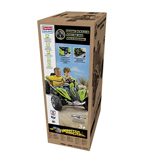 - Feature : Get into the action with Monster Traction! Won't get stuck where the others do! / Features big, rugged tires, flashy chrome accents and sturdy steel frame. / Roomy open cockpit design, ?pretend? seat belts for added play, and storage under the hood / The vehicle drives 2.5 and 5mph forward and 2.5 mph in reverse / Includes a 12-volt battery and charger