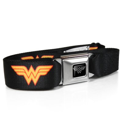 (Buckle Down)/Accessories/Belts Buckles/DIRECT FROM USA/Wonder Woman DC Comics Superhero Black And Yellow Repeating Logo Seatbelt Belt