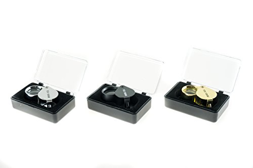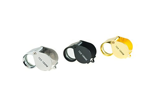 SE is proud to present our 3-Piece Set of Jeweler's Loupes in Black, Gold, and Silver. Our loupes are perfect for inspecting gems, stones, jewelry, looking at fine print or details, for stamp and coin collectors, and everyday use. With our set of 3 its easy to have one on hand whenever you need one at work, home, car, in your purse, pocket, drawer, briefcase, backpack, etc. Features of our 3-Piece Set of Jeweler's Loupes include: - Magnification: 10x