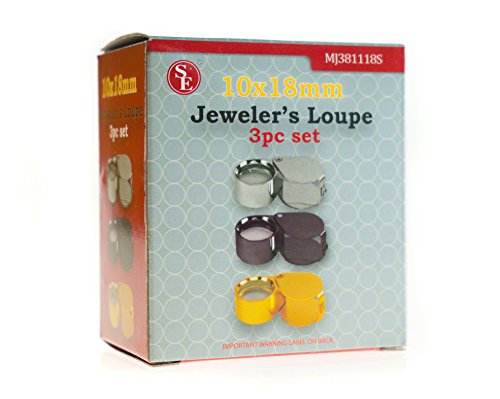 Important: Avoid getting counterfeit items. Genuine SE products come with our SE logo on the packaging. SE is committed to providing the customer with the best source for value possible on the market. You will enjoy the quality, function and usefulness this 3-Piece Set of Jeweler's Loupes in Black, Gold, and Silver has to offer. SE is a registered trademark protected by US Trademark Law. 0 |