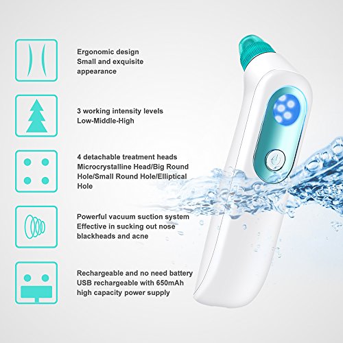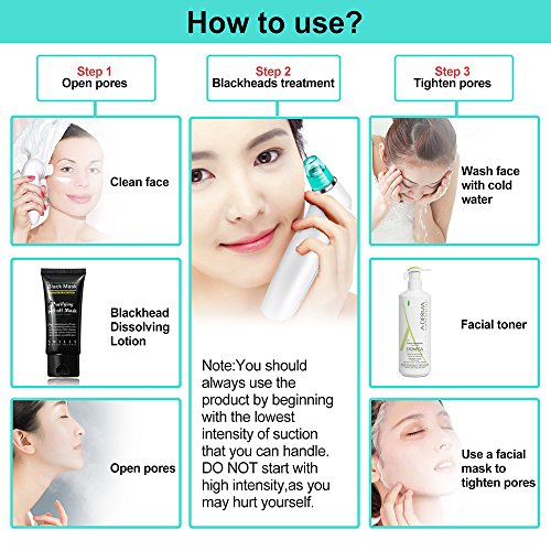 Specifications: Working Voltage Input: 3.7V Charging Voltage Input: 5.0V Rated Power: 1.2W Charging Time: 3 hours Attention: 1.Please read the user manual before using the product. 2.You should always use the product by beginning with the lowest intensity of suction that you can handle. DO NOT start with high intensity, as you could hurt yourself. It is completely normal to have light bruising for the first 2 days of use. Your skin will get back to normal later on. 3.Each time use should be limited to a MAXIMUM of 5 minutes. Any effective system will cause some form of discomfort before you can see results. Please don't get discouraged by the bruises. Steps for using: 1.Use the hot spray steamer or hot towel attaining face 3-5 minutes to open the pores. 2.According to your requirements to choose the beauty tips and install it. 3.Press the power button and choose level suction pressures. 4.Hold and move it back and forth; 1-2 minutes will be recommended if you use it for the first time. When the device is in charging status you can see one blue light flashing. When the device is fully charged, the blue light will be lasting on. Package Includes: 1x Facial Machine 4x Replaceable Suction Heads 1x USD Cable 1x Instruction Manual 0
