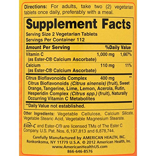 Product DescriptionAmerican Health Ester-C with Citrus Bioflavonoids - 500 mg - 225 Vegetarian Tablets0