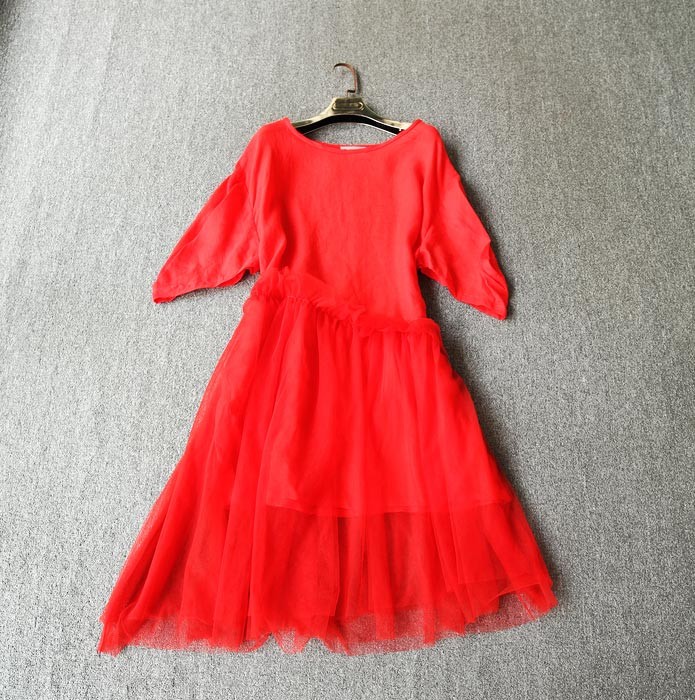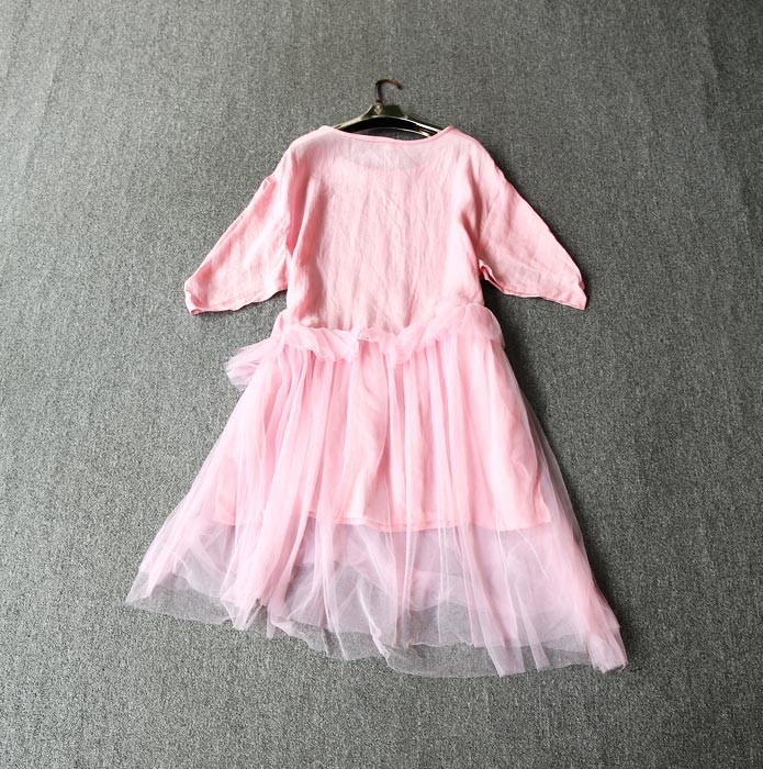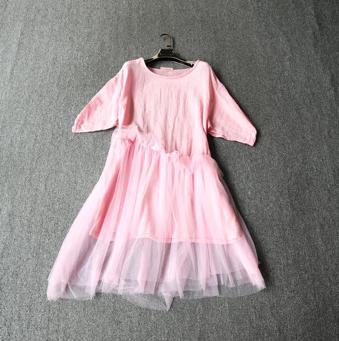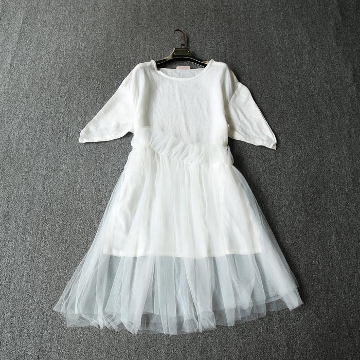 メッシュをプラスしたシンプルで着心地の良いガーゼ素材のラウンドネックワンピ♪