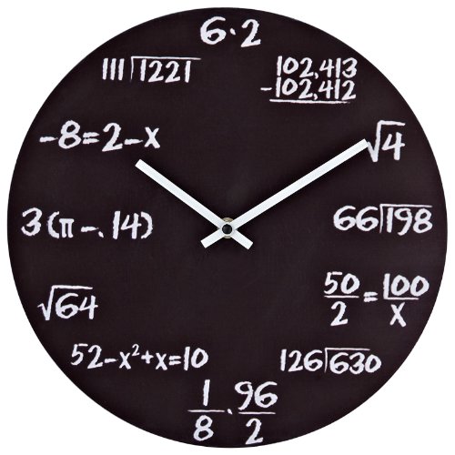 - Feature : Work out the mathematical equations to determine the hour / Black powder coated metal / Measures 11-1/2-inch diameter / Requires one AA battery not included / Quartz movement
