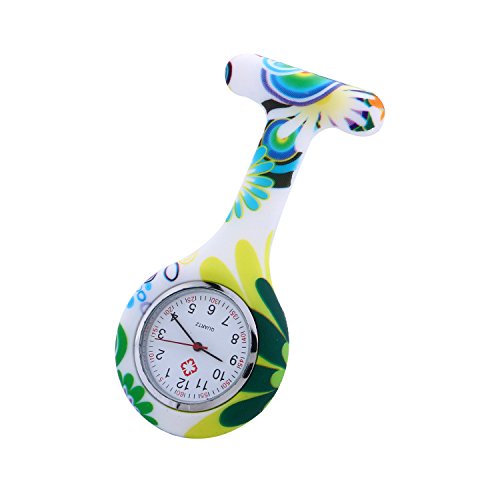 -. Title : Etbotu Unisex Nurse Watch Silicone Round Clip-on Fob Brooch Watch with Floral Printing Cover