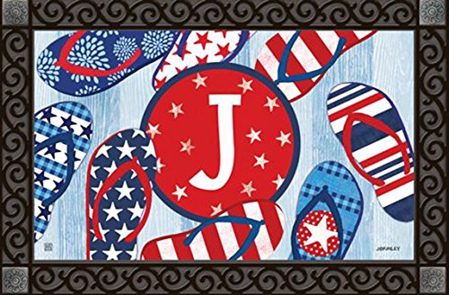 -. Title : Freedom Flip Flops Monogram J Doormat Indoor/Outdoor Patriotic Letter J MatMates