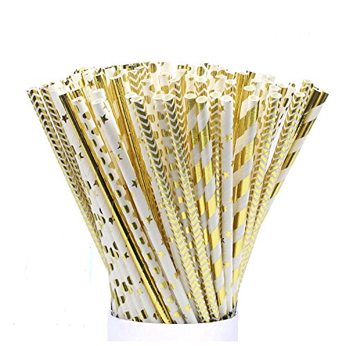 -. Title : Paper Straws 125 PCS JIANFA-Food Grade Gold Foil Paper Straw Biodegradable Straw for Birthdays,Christmas, Weddings, Baby Showers, Celebrations and Parties