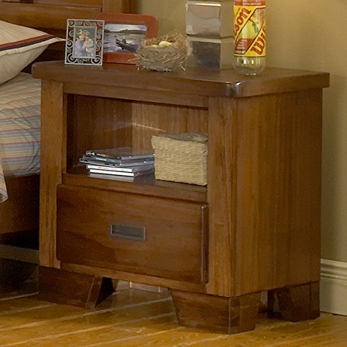 Studio : American Woodcrafters Publisher : American Woodcrafters Binding : Kitchen Product Description Heartland, ruggedly constructed furniture from American Woodcrafters, will withstand sleepovers and adventures with piles of friends. Constructed using mortise and tenon construction of select hardwoods and veneers, with a protective spice finish that is durable and easy to maintain. The nightstand features one drawers measuring 14.5 inches deep featuring English dovetailing on front and backs, veneered drawer bottoms for snag free storage and one open shelf area. Recessed gunmetal hardware, dust proofing on Bottom drawer embodies the quality of the construction; positive drawer stops and tip resistant furniture brackets add additional safety. Feet ship in Bottom drawer and are ready to assemble. 0