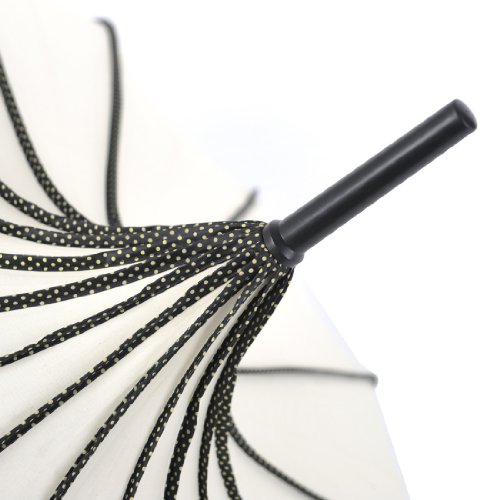 -. Binding : Apparel -. Brand : Topwedding -. ClothingSize : OneSize -. Department : unisex-adult -. Feature : Stylish pagoda umbrella with trimmed edge; the tiny round dot may be either white or pink / Approximate 35'' in diameter / Folded length: 34'' / PU leather hook handle / Perfect gift for wedding, christmas, birthday and other events -. ProductGroup : Apparel -. ProductTypeName : BAG -. Size : One Size -. Title : Topwedding 35'' Nylon Pagoda Parasol Bridal Umbrella