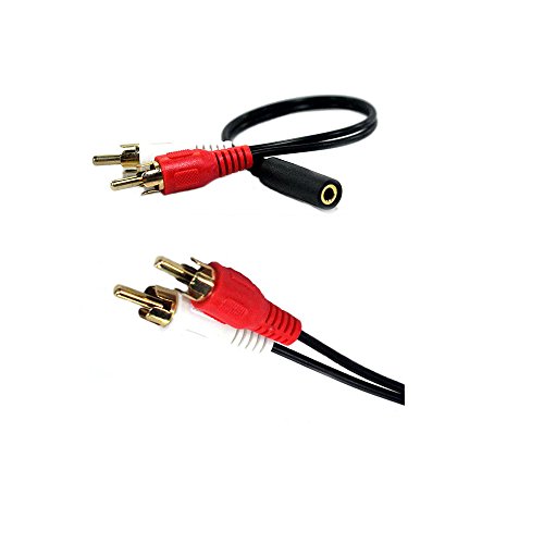 Quality 3.5mm stereo jack socket to 2 phono / RCA plugs cable 0.25m. Can be used to connect headphones to you TV, stereo, connect iPod or iPhone to your car stereo and much more. 10inch Length. Contents