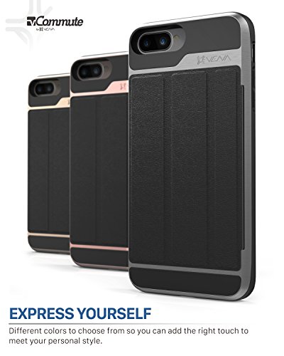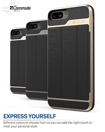 iPhone 8 Plus Wallet Case, iPhone 7 Plus Wallet Case, Vena [vCommute][Military Grade Drop Protection] Flip Leather Cover Card Slot w/ KickStand for Apple iPhone 8 Plus / 7 Plus (Space Gray / Black)