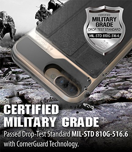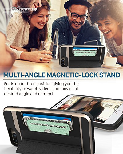 iPhone 8 Plus Wallet Case, iPhone 7 Plus Wallet Case, Vena [vCommute][Military Grade Drop Protection] Flip Leather Cover Card Slot w/ KickStand for Apple iPhone 8 Plus / 7 Plus (Gold / Black)