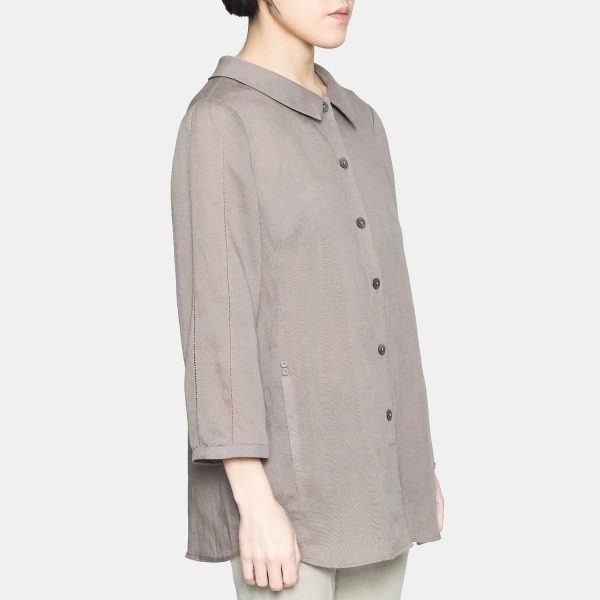 쾌적하고 청량한 착용감의 리넨 혼방 블라우스입니다. 리넨 특유의 자연스러운 색감과 촉감이 느껴지며, 다양한 착장에 가볍게 매치할 수 있는 아이템입니다.