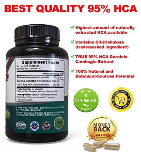 -. Binding : Health and Beauty -. Brand : BioGanix -. Feature : TRUE 95% HCA GARCINIA CAMBOGIA EXTRACT WITH ADVANCED TECHNOLOGY - This formula is entirely 95% HCA, meaning out of each Garcinia Cambogia Capsule with 500mg, 475mg is pure HCA content thanks to an advanced trademarked manufacturing process. Beware of those products that say "complex" or "contains 95% HCA", those are not pure HCA content like ours. / HIGHLY EFFECTIVE WEIGHT LOSS SUPPORT - Super Extreme Garcinia Cambogia weight loss supplement by BioGanix helps men and women manage their weight by supporting fat loss and suppressing appetite. This garcinia cambogia 95 HCA does this by inhibiting an enzyme in your body and regulating serotonin levels, making you feel full with smaller portions of food. / 100% NATURAL AND BOTANICAL-SOURCED FORMULA! Our product is naturally extracted and sourced from the garcinia cambogia pure fruit rind extract. It's not lab generated or synthesized like many other competitors offer - if you see "complex", it may mean part of its content is lab generated or contains synthetic ingredients used to spike the HCA content. Choose only the healthiest and safest - BioGanix. / GET RESULTS OR YOUR MONEY BACK - We make investing in your health and fitness a no-brainer. It's this simple: If you use our 95% HCA Pure Garcinia Cambogia Extract and don't see any results, we'll give you a full refund. No questions asked. It is a risk-free investment for you. / ESTABLISHED AND TRUSTED BIOGANIX BRAND - Made in the USA in FDA inspected and GMP certified facilities. Gluten-free, Non-GMO, no artificial ingredients, no caffeine, no stimulants and definitely NO synthetic garcinia extract. This is a top-notch quality Garcinia Cambogia Extract HCA formula - 100% natural. -. IsAdultProduct : 0 -. Label : BioGanix -. LegalDisclaimer : *These statements have not been evaluated by the FDA. This product is not intended to diagnose, treat, or cure any disease. Please read disclaimers and warnings on the label before use. -. Manufacturer : BioGanix -. MPN : bioganix-95garcinia60a -. PackageQuantity : 1 -. PartNumber : bioganix-95garcinia60a -. ProductGroup : Health and Beauty -. ProductTypeName : HEALTH_PERSONAL_CARE -. Publisher : BioGanix -. Studio : BioGanix -. Title : 95% HCA Garcinia Cambogia Extract 100% Natural (SUPER EXTREME Potency) Powerful & Safe Formula For Weight Loss Support - 3rd Party Lab Tested (60 Veggie Capsules)