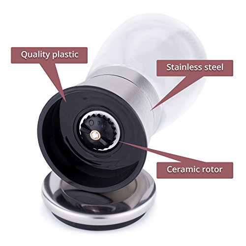 CERAMIC ROTOR DOESN’T GET DULL OR RUSTY – Our table salt and pepper grinder set has a rotor made of a safe and ecologically clean material – ceramic. The shakers mill any spice easily.