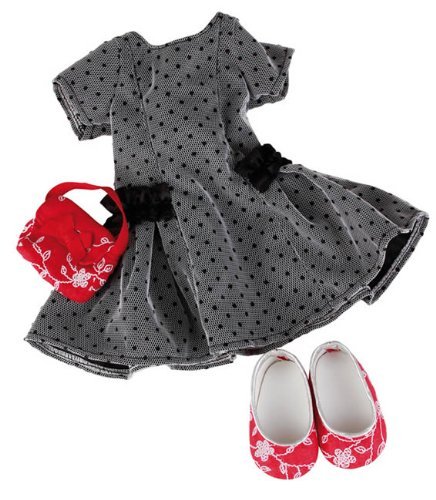 -. Feature : Includes dark grey polka-dotted dress, red purse, and red shoes. All our garments are perfectly finished, i.e. button-holes, pockets, and embroidery, are realistic and not sewn on as applications. / This is a perfect fit for 18" dolls such as gotz precious day, American Girl Paola Reina Every Day girls and Madame Alexander Favorite Friends.
