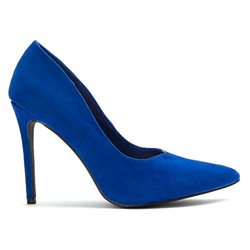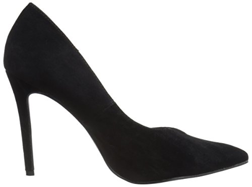 -. Feature : Faux-suede d'orsay-inspired pump with pointed toe
