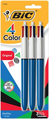 -. Title : BIC 4-Color Ball Pen, Medium Point (1.0mm), Assorted Ink, 3-Count
