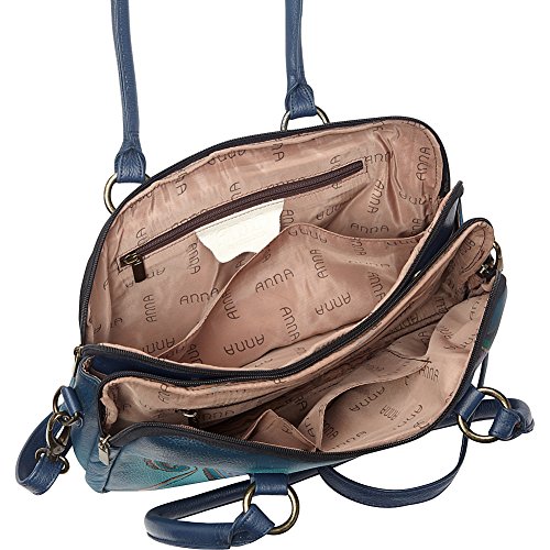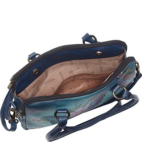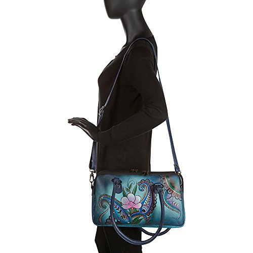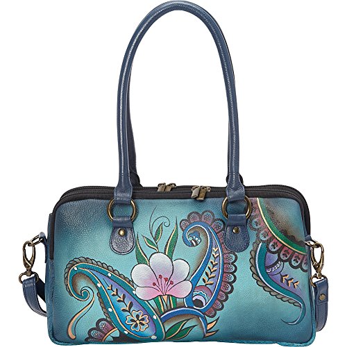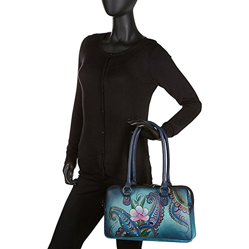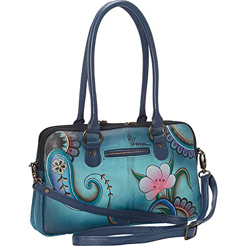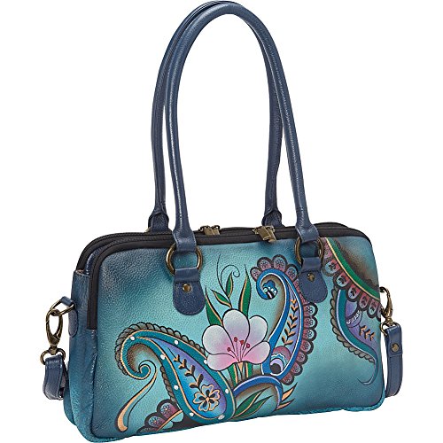 Anuschka Anna by Handpainted Leather Large Multi Comparment Satchel, Denim Paisley Floral