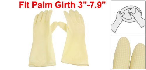 - Feature : Product Name : Clean Latex Gloves;Color : Yellow / Material : Latex Rubber;Fit Palm Girth : 16-20cm/6.3"-7.9" / Wrist Open Width : 25cm/9.8";Flat Size : 31 x 13cm/12.2" x 5.1"(L*W) / Net Weight : 96g / Package Contents : 1 Pair x Clean Latex Gloves