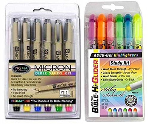 Accu-Gel Bible Highlighters (Pack of 6) Plus Pigma Micron Bible Underlining Pens (6 Pack) Deluxe Study Kit