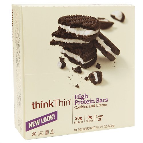 -. Title : thinkThin High Protein Bar, Cookies & Cream, 10 pk 2.1 oz (60 g)