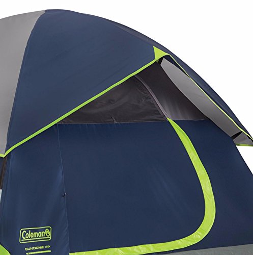 Studio : Coleman Publisher : Coleman Binding : Sports Product Description The Coleman Sundome 4, 9'x7', dome tent is part of the classic Sundome series of tents from Coleman. The Sundome 4 sleeps 4 happy campers and includes a large door for easy entry/exit with a hooded fly to provide ventilation even in rain. A large rear hooded window also provides airflow for cross ventilation. Mesh vents on the roof provide additional ventilation and the rugged 1000D polyethylene floor is a bathtub style (wraps up the sides) for extreme weather protection and has welded seams, even in the corners, to guard against a leaky floor. The coated polyester fabrics on the fly and walls are rugged and durable. Like all Coleman Sundome tents it is easy to set up or take down and features an Electrical Access Port, a ground vent and an interior mesh storage pocket. 0