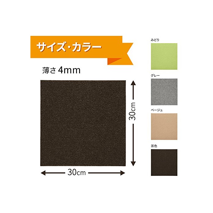《렛쿠》 # Q 흡착 타일 매트 30×30cm 9매입 브라운 ( 타일 카펫트 )