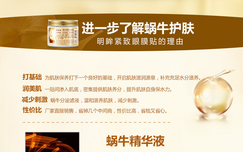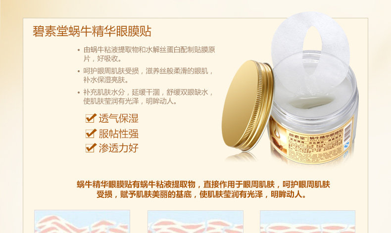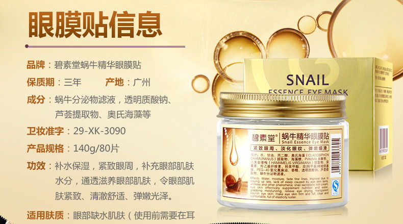 蜗牛精华眼膜贴80片 淡化黑眼圈去眼袋细纹眼贴膜补水保湿