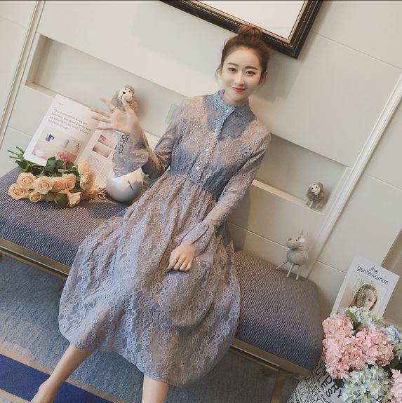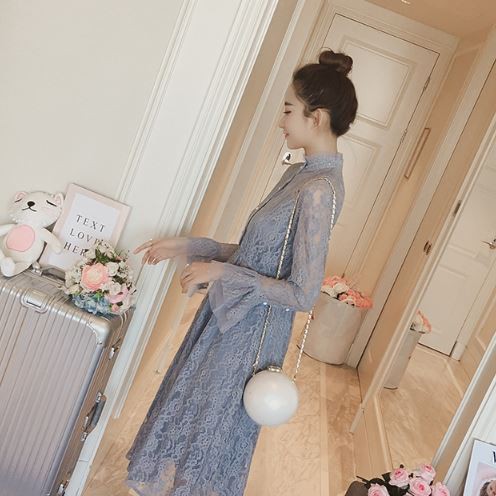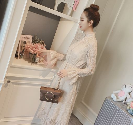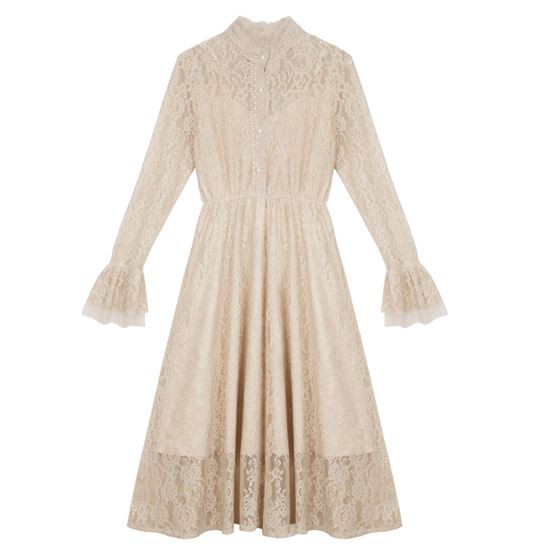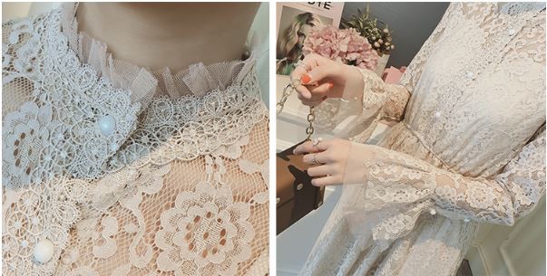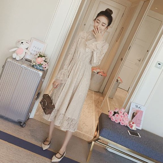総レース生地が甘い印象のパーティードレスです。