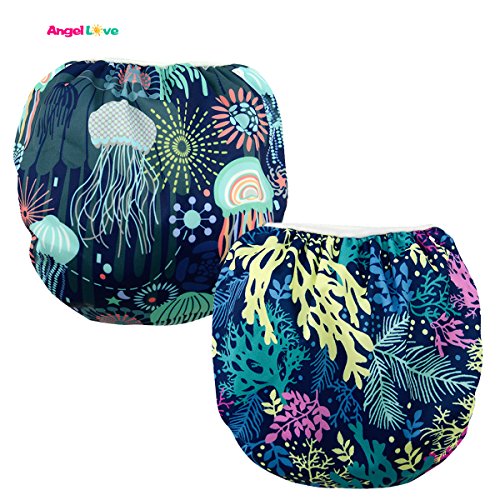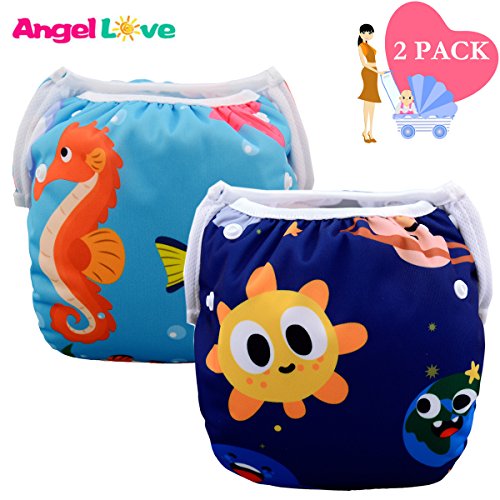Baby Swim Diapers(Pack of 2), Reusable One Size, Adjustable, Soft, Lightweight, More Comfortable Swimwear, Potty Training Pants, Washable Unisex Fits Babies 0-2 Years for Girls (SWD0411)
