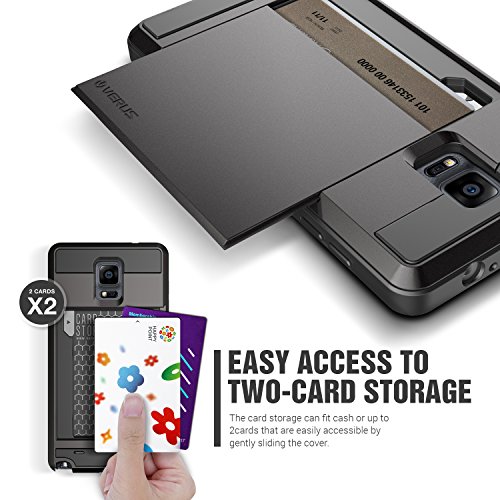 - Feature : Precisely Designed Samsung Galaxy Note 4 Card Slot Case [Domestic & International] / Tough yet Slim, Form Fitting Hardshell Construction with Soft Core [Sports Edition] / Convenient Card Storage to Securely Carry up to Two IDs and Credit Cards / Patented Sliding Technology for Each Access to the Storage / Rubberized Edges for Anti Slip Protection