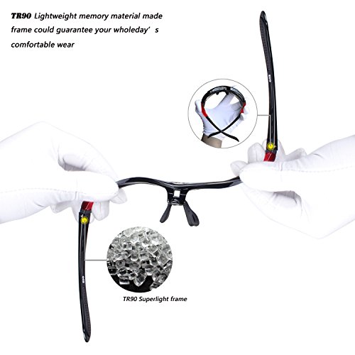 TR90 MATERIAL FRAME - You can hardly feel them on your face. TR90 is a kind of polymer material with memory frame. More lightweight, more comfortable wearing. High impact resistance, hard to be broken. No chemical residues, more secure. It is especially great sport sunglasses for men women.