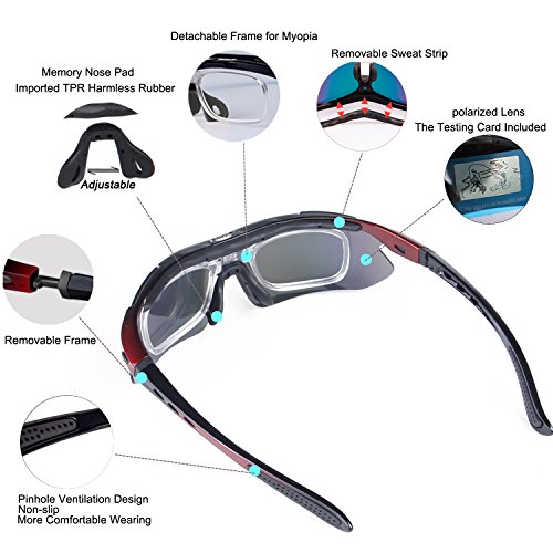 UNIQUE DESIGN - Four different from other glasses. Removable sweat strip, not only prevent sweat into your eyes but also protect your forehead. Removable frame(you can exchange to the elastic sport belt ), Pinhole ventilation non-slip design make your glasses will not slide during strenuous exercise. Add the detachable frame designed for myopia.