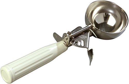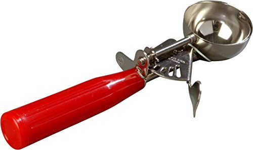Built with an extended bail blade that prevents sticking, the Carlisle disher makes a perfect solution for scooping ice cream, mashed potatoes, cookie dough and meatballs in accurate portions. All disher scoops (sold separately) come in a specific easily identifiable color to match a specific measurement. The disher features a durable one-piece handle that is easy-to-clean and is dishwasher safe. The grooved handle and thumb grip allow for a more secure and comfortable grip during use. This disher meets NSF international standards for use in food handling and processing.Feature