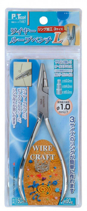 | 仕様 | 150mm 使用最大線径:φ1.0mm以下 サイズ:約φ3、4、5mm 先端硬度:HRC約40度 3段階方式丸型曲げ用、 テンの材質:USA規格AISI410American、Iron、and、Steel、Institute |