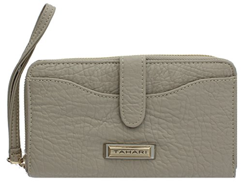 -. Binding : Apparel -. Brand : Tahari -. Department : womens -. Feature : • Measures 7.75" x 3.50" x 1". Rugged Pebble Faux Leather. / • RFID Blocking Protection Will keep your identity Safe from Thieves that can scan your wallet / • Zip-around Section with 2 open compartments, 2 open pockets, 12 credit card slots and 1 zipper pocket for coins / • Large front Pocket with Snap Closure. / • New Tahari 2 Tone Name Plate -. ProductGroup : Apparel -. ProductTypeName : ACCESSORY -. Size : One Size -. Title : Tahari Cosmo Cash Tab Zip Around Wristlet With RFID