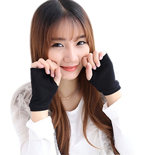 KINGSEVEN Women Girls Mittens Black Winter Fingerless Gloves