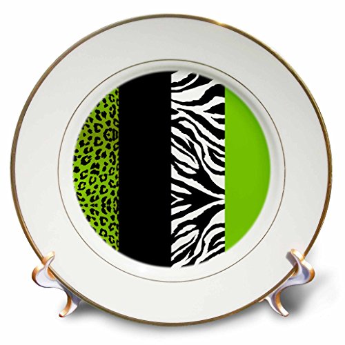 3dRose cp_35440_1 Lime Green Black and White Animal Print Leopard and Zebr a Porcelain Plate, 8"