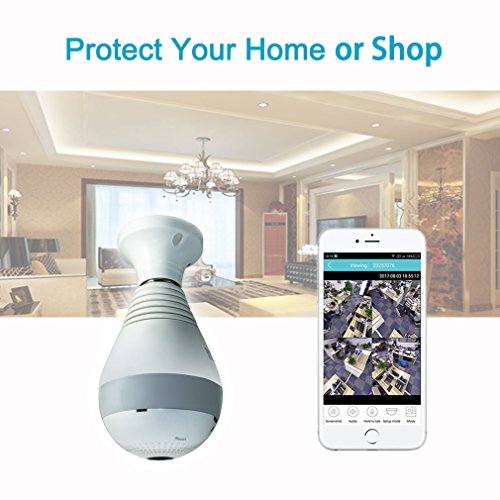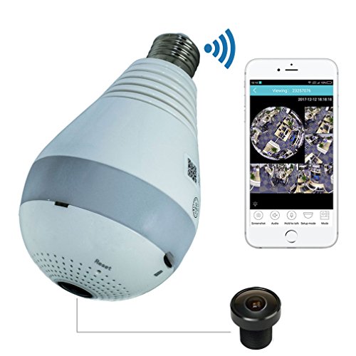 -. Title : Wifi Light Bulb IP Camera for Home Security, 360° Panoramic Fisheye 1080P Wireless Hidden Surveillance with LED Lights SD Card Recording,Two-way Audio,Support iPhone/Android Phone/iPad Remote Monitor