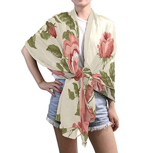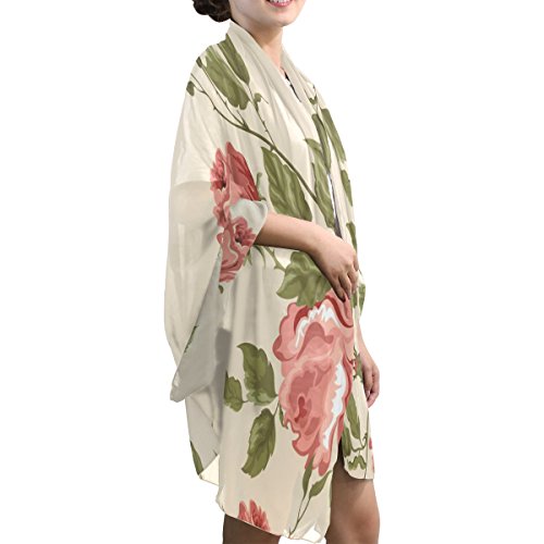 Title : Senya Women's Fashion Large Long Sheer Silk Scarf Shawl Wrap, Floral Pattern With Rose