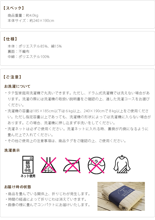 ●中綿:ポリエステル100%