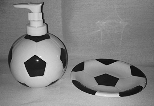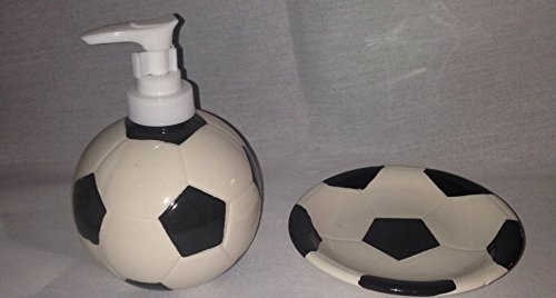 Sports: Soccer Ceramic Stoneware Bathroom Accessories: Soap/Lotion Dispenser & Doiap dish (2pcs)