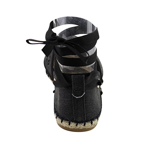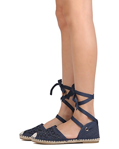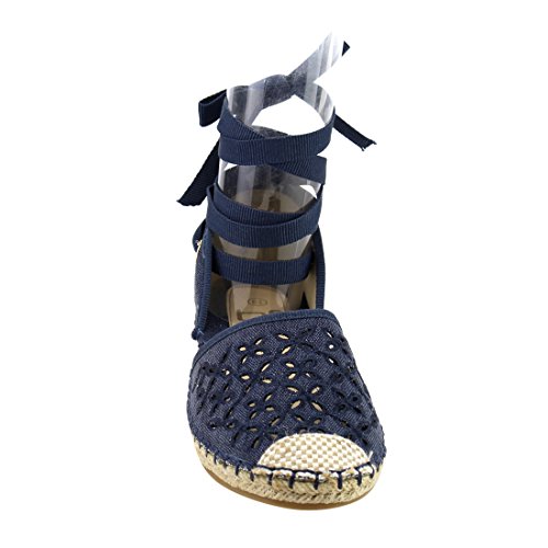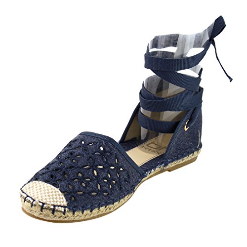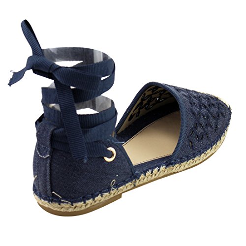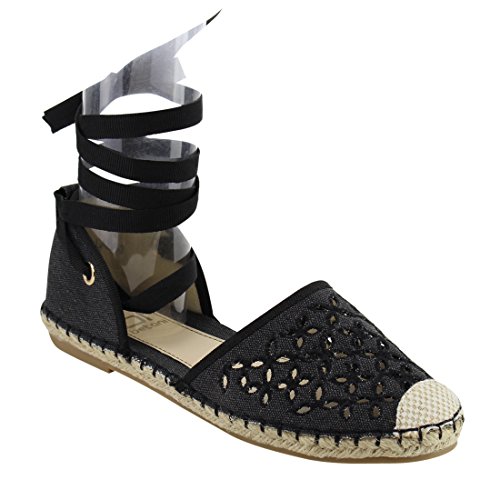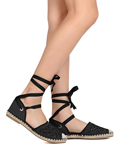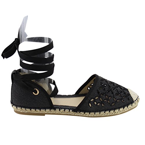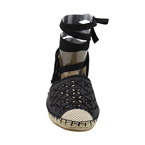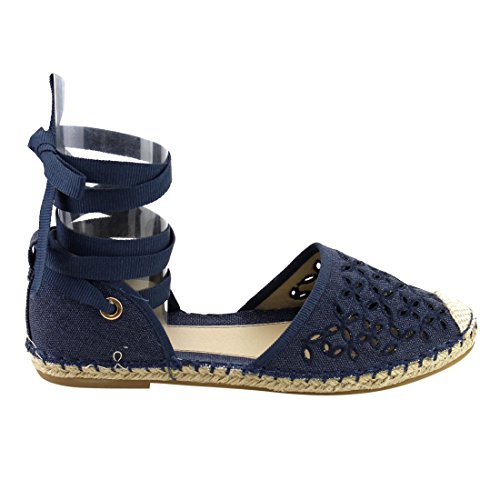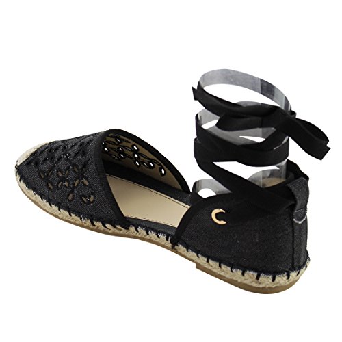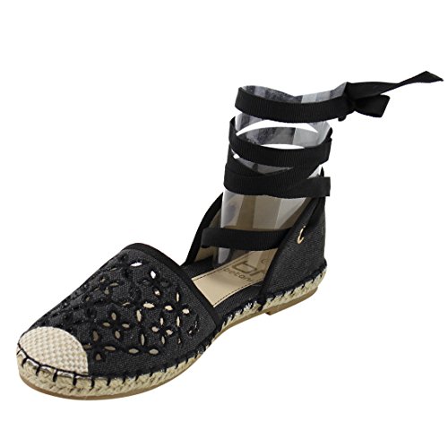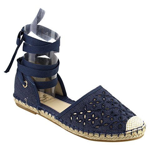 Product Description These perforated espadrilles are made with a canvas upper, round toe, and stitch details. Also designed with a flat heel and lace up ankle wrap closure. 0