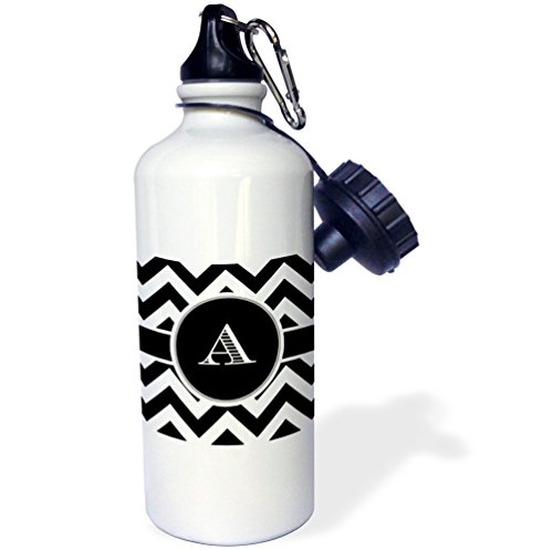 3dRose wb_222063_1 "Black and white chevron monogram initial A" Sports Water Bottle, 21 oz, White