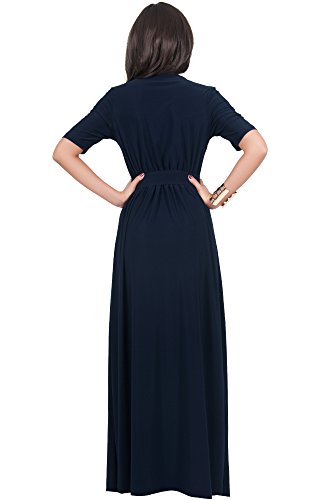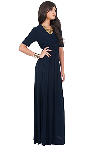 Koh Koh Women's Half Sleeve Elegant Evening Long Maxi Dress with Belt - Large - Navy Blue