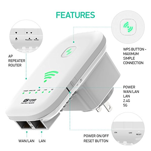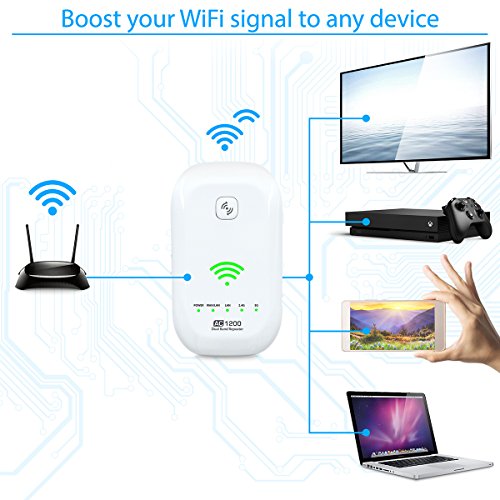 ✅ UNIVERSAL COMPATIBILITY - WiFi Booster are compatible with any router or access point, making it easy to expand and strengthen your network in 2.4 or 5GHz, even as it changes over time.. Boost your existing network range, delivering AC dual band WiFi up to 1200 Mbps. This Wifi repeater is small and discreet, easily blending into your home decor.