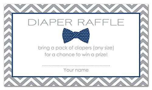 - Who doesn't like a raffle? These cute raffle cards feature a navy bow tie and grey chevron border. Diaper raffles are a great way to add more excitement to your baby shower.