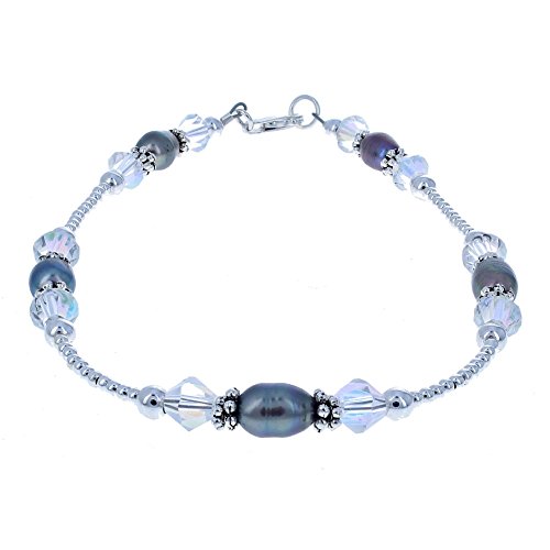 -. Title : Womens Genuine Grey Fresh Water Cultured Pearls, Swarovski Crystal & Sterling Anklet with Daisies