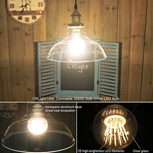 CRLight 18W Dimmable LED Edison Style Vintage Filament Light Bulb, 3000K Soft White 1500LM, E26 Medium Base, 150W Incandescent Replacement, G125 Globular Shape, Ultra Brightness and Excellent